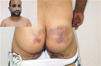 Los comunicadores lograron que la directora del centro, Jenny Hernández, permitiera entrevistar al prevenido, quien aprovechó la ocasión para mostrar los golpes recibidos en la espalda y los glúteos.