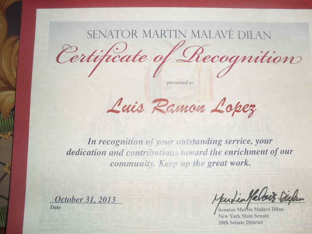 Por iniciativa del dirigente comunitario Elvio Vargas, el senado tomó sus recomendaciones de hombres y mujeres trabajadores del distrito, perteneciente al sector de Bushwich, que merecían tan alta distinción.