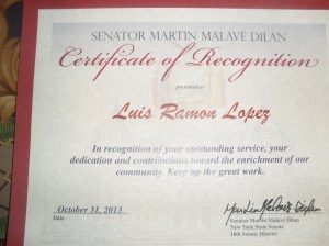 NEW YORK.- El senado estatal de la ciudad de New York, hizo un merecido reconocimiento al otorgar al periodista de origen mocano, Luis Ramón López, un pergamino de reconocimiento por su encomiable labor en promover y divulgar las obras, hechos y actividades de la comunidad dominicana en esta gran urbe.