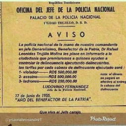 En la era de Trujillo, para las décadas de los 40 y 50 hubo un crecimiento en el país de robos, que obligó al jefe de la policia de entonces, Ludovinio Fernández, a ofrecer a la ciudadanía premios, a quienes ayuden a controlar la delincuencia ejecutando a delincuenntes.