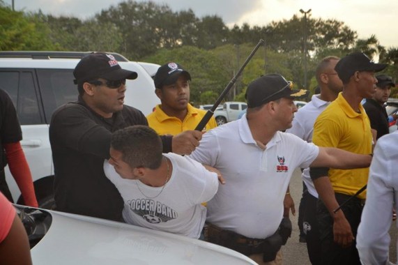 La Policia, detuvo al intruso y agresor mocano, que ahora enfrenta cargos por agresión física con agravante.