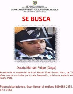 SANTO DOMINGO. El vocero de la Policía Nacional, Máximo Báez Aybar, difundió una fotografía a través de las redes sociales, de un segundo joven acusado de la muerte del turista alemán en Puerto Plata.