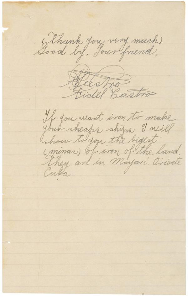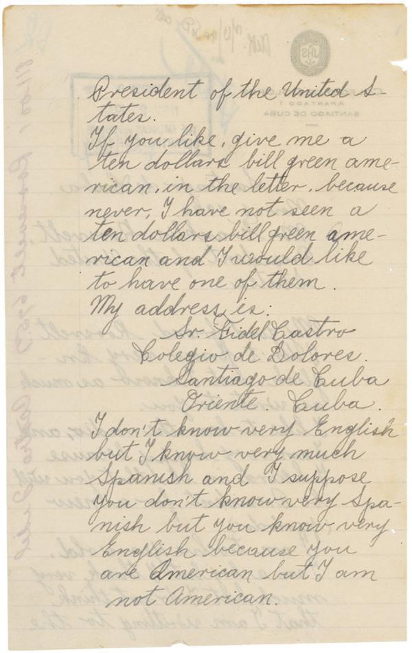 En la misiva Castro hacía un pedido insólito: un billete de 10 dólares. A cambio, el joven se ofrecía revelarle al presidente el sitio donde se encontraban las minas de hierro más grandes de Cuba.