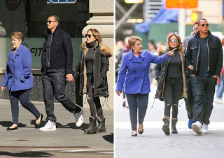 Las instantáneas muestran al popular A-Rod junto a doña Guadalupe y a J.Lo caminando por las calles de New York el domingo 2 de abril. Ambos lucen sonrientes.
