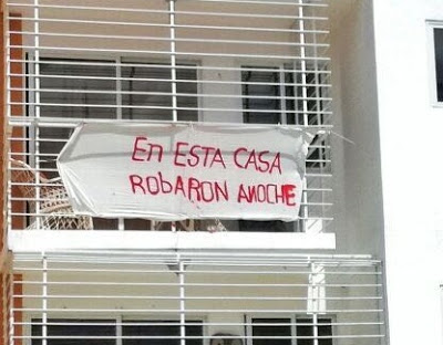 Santiago.- “En esta casa robaron anoche”. La afirmación fue escrita con tinta roja en un trozo de tela, por los propietarios de un apartamento donde desaprensivos penetraron la madrugada de este lunes, cargando con varios objetos de valor.