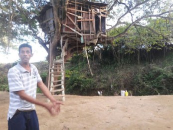 SANTIAGO.-Sobre un árbol vive una familia de cinco miembros en una localidad del municipio Puñal, al este de Santiago, quienes desde hace tres años han vivido en la miseria, por tragedias que le han sacudido.