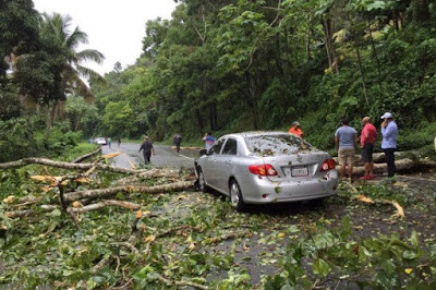 La caída de una mata afectó a dos carros próximo a Piedra Blanca en Bonao, provincia Monseñor Nouel. El otro cayó en la entrada de Santo Cerro en La Vega.