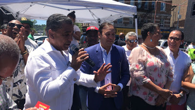 El Alcalde Martínez, acompañó al congresista Espaillat, la Asambleísta Carmen De La Rosa, Laura Acosta, presidenta de la Fundación Juan Pablo Duarte, los directivos de la Asociación de Vendedores Comunitarios de la calle 207, el empresario Cirilo Moronta, miembros de la prensa y activistas de la comunidad dominicana en New York.
