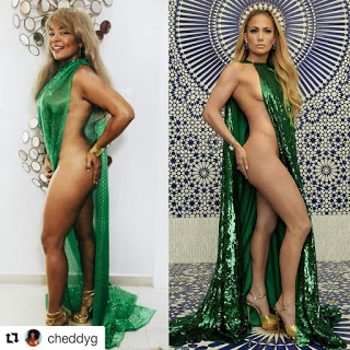 La intérprete compartió en Instagram un fotomontaje en el que aparece con una batola verde brillante similar a la usada por la cantante de origen boricua para la seión de fotos semidesnuda.
