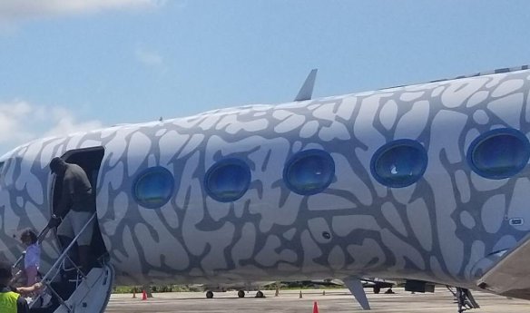 Jordan arribó a República Dominicana en un avión Gulfstream G550 de su propiedad con la matrícula N236MJ y el logo de su marca deportiva, por el aeropuerto El Catey, de Samaná.