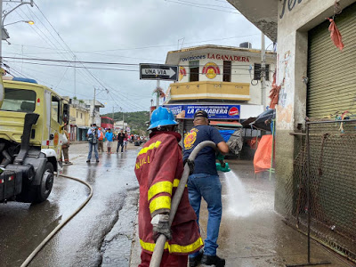 Inmediatamente las brigadas van retirando la basura acumulada, miembros del Cuerpo de bomberos, dirigidos por su intendente Alexis Mascat, utilizan camiones bomba para dejar la zona completamente limpia e inmediatamente otra brigada se encarga de la desinfección general utilizando hidro lavadoras con cloro, lejía y agua.