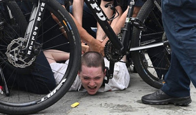 Varios videos circularon en las redes sociales con policías tumbando personas al suelo y usando bastones, reseñó New York Post.