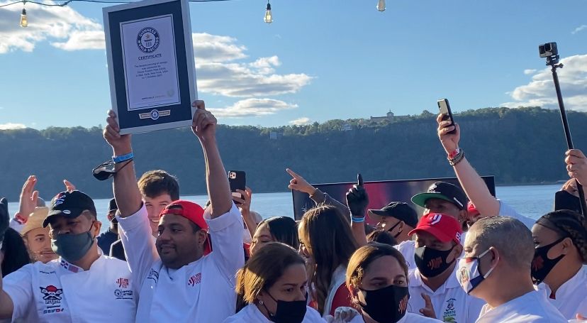 New York- La gastronomía dominicana comienza a vivir un momento histórico al poseer el récord Guinness con uno de los platos favoritos de todos los dominicanos como es el “Mangú”. Los internacionales chefs utilizaron 4,500 plátanos y 260 libras de cebollas para lograr la hazaña gastronómica, la cual fue adornado con “Salami, huevo y queso”, creando el famoso plato típico dominicano los tres golpes.