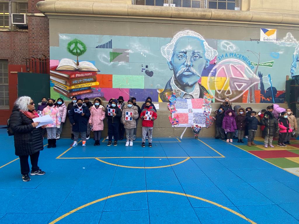 En la referida actividad estuvieron presentes Rafael Vancamper, presidente del Instituto Duartiano de EE UU, Janet Durán, expresidente de la Asociación de Padres de la PS 132M, el periodista Adalberto Domínguez y Bienvenido Lara Flores, ambos miembros del Instituto, Wendy Poveda, principal del plantel escolar y un grupo de niños de 5to y Kindergarten, entre otros.