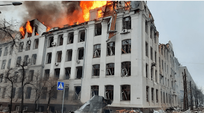 Bombardean el departamento de Sociología de la universidad de Karmazin Posted on 2 marzo, 2022 por mocapresente2013 UCRANIA.-Un edificio de la Universidad de Járkov, blanco de los ataques rusos El departamento de Sociología de la Universidad Karmazin, en Járkov, se encuentra este miércoles en llamas después de sufrir un ataque por parte de las fuerzas rusas. Comparte esto: Compartir en X (Se abre en una ventana nueva) X Comparte en Facebook (Se abre en una ventana nueva) Facebook Compartir en WhatsApp (Se abre en una ventana nueva) WhatsApp Enviar un enlace a un amigo por correo electrónico (Se abre en una ventana nueva) Correo electrónico Me gusta Cargando...