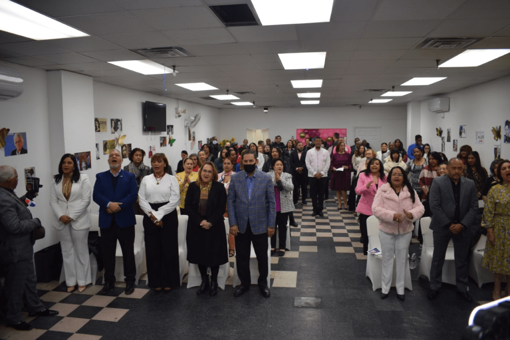 La misma se inició con la entonación de los himnos de Estados Unidos de Norte América, de la República Dominicana, y del PRM, seguido de la invocación al señor por la pastora Elena Ventura.