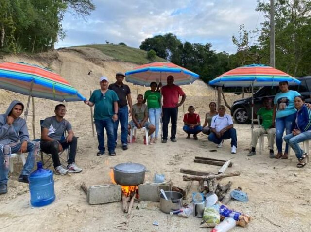 Santiago – Los moradores de la comunidad Los Melaos de Baitoa continúan en protesta con una vigilia para impedir que camiones penetren al área para extraer material.