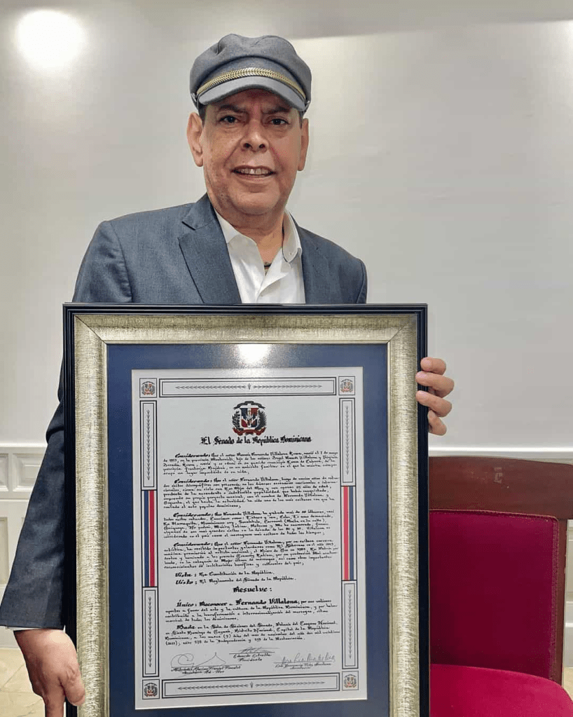 SANTO DOMINGO.-El popular merenguero Fernando Villalona dedicó a sus padres el homenaje que recibió este miércoles en el Senado de la República Dominicana, quien lo reconoció por sus 50 años en el arte.