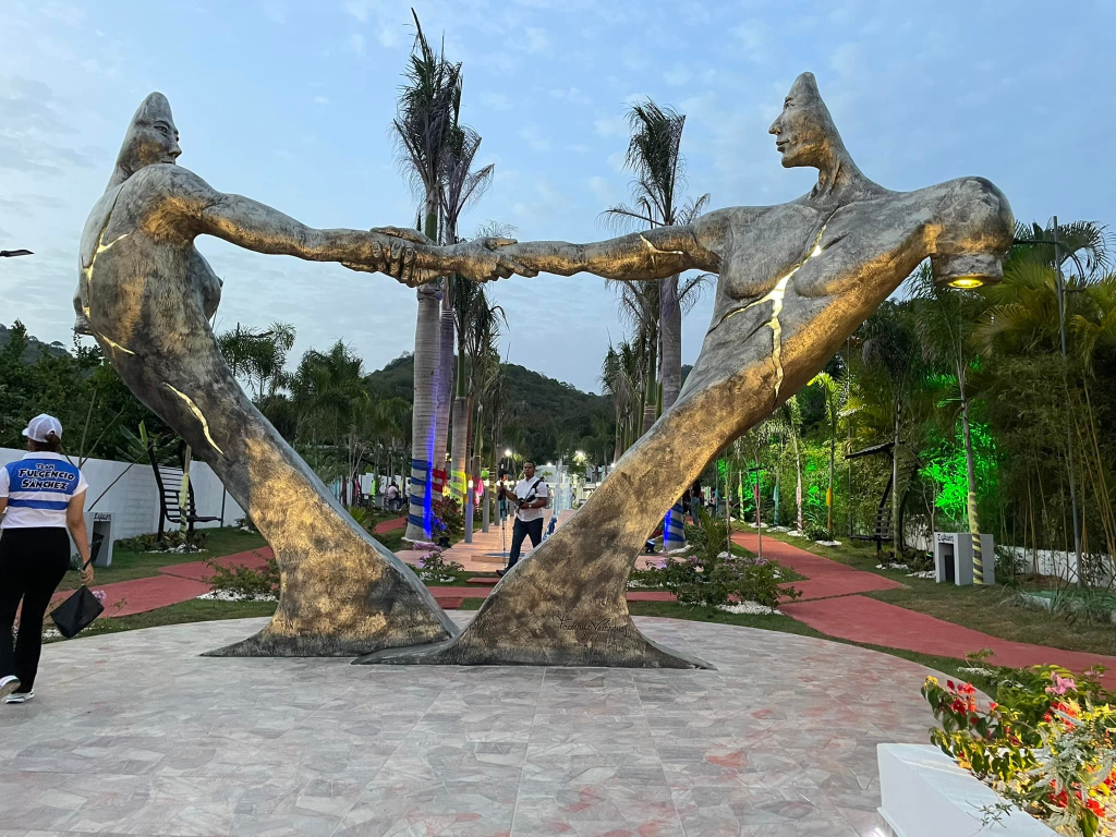 Este parque central, hermoso de un diseño moderno, atractivo y turístico, en su parte frontal de su entrada, tiene una gigante escultura y una jardinería, que dan la bienvenida, donde aquí podrá la población descansar, jugar, reunirse con amigos y familiares, hacer deportes o actividad física.