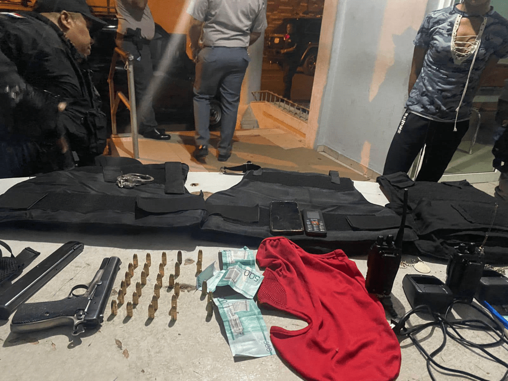 A la hora de requisarle, la Policia Nacional, le ocupó una pistola, dinero en efectivo, tres chalecos antibalas, radios de comunicación, mochilas, prendas, esposa, balas y teléfonos célulares. Se tiene reporte, según la PN, de un video del grupo robando en una joyería en Nagua, provincia María Trinidad Sánchez.