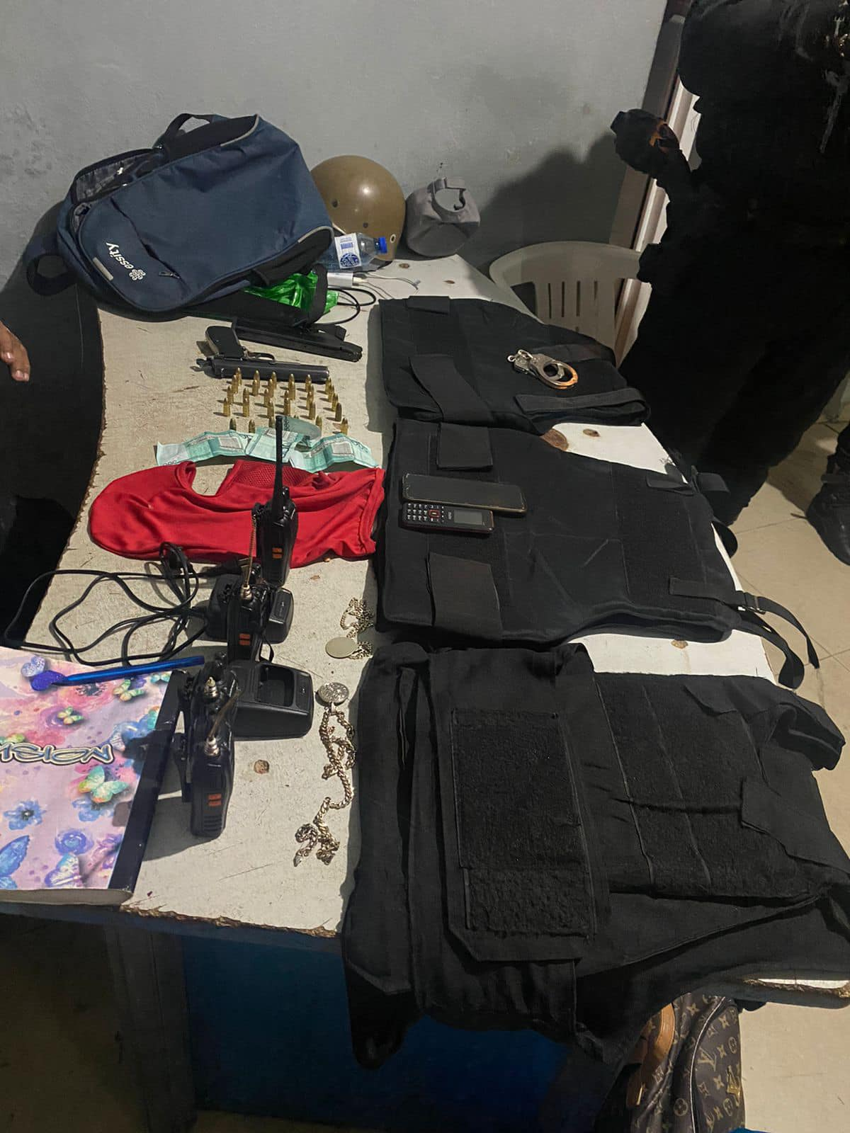 A la hora de requisarle, la Policia Nacional, le ocupó una pistola, dinero en efectivo, tres chalecos antibalas, radios de comunicación, mochilas, prendas, esposa, balas y teléfonos célulares. Se tiene reporte, según la PN, de un video del grupo robando en una joyería en Nagua, provincia María Trinidad Sánchez.