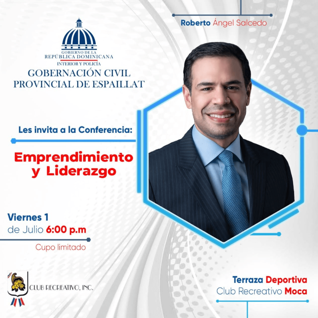 “Nos llena de entusiasmo poder invitarle a la conferencia Emprendimiento y Liderazgo, que impartirá un gran joven y exitoso empresario de nuestra nación Roberto Ángel Salcedo…