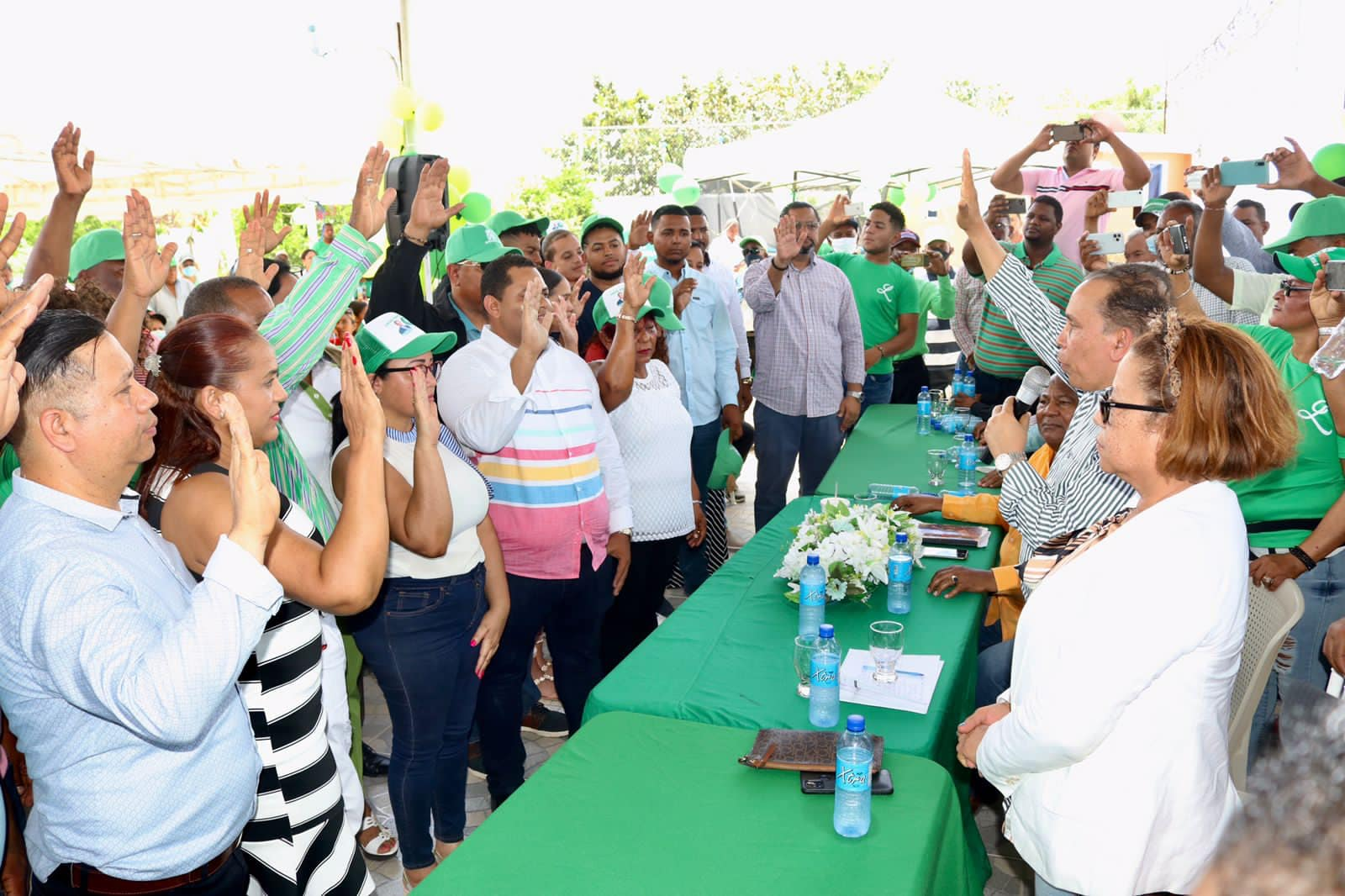 El vicepresidente y coordinador de la FP, se hizo acompañar en todas las actividades de la alta dirigencia provincial de la organización política, el doctor Alejandro Toribio, presidente provincial, doctor Agustín de la Cruz, presidente municipal, doctor Demetrio Castro, licenciado Juan de Dios Juliao (Juanbao).