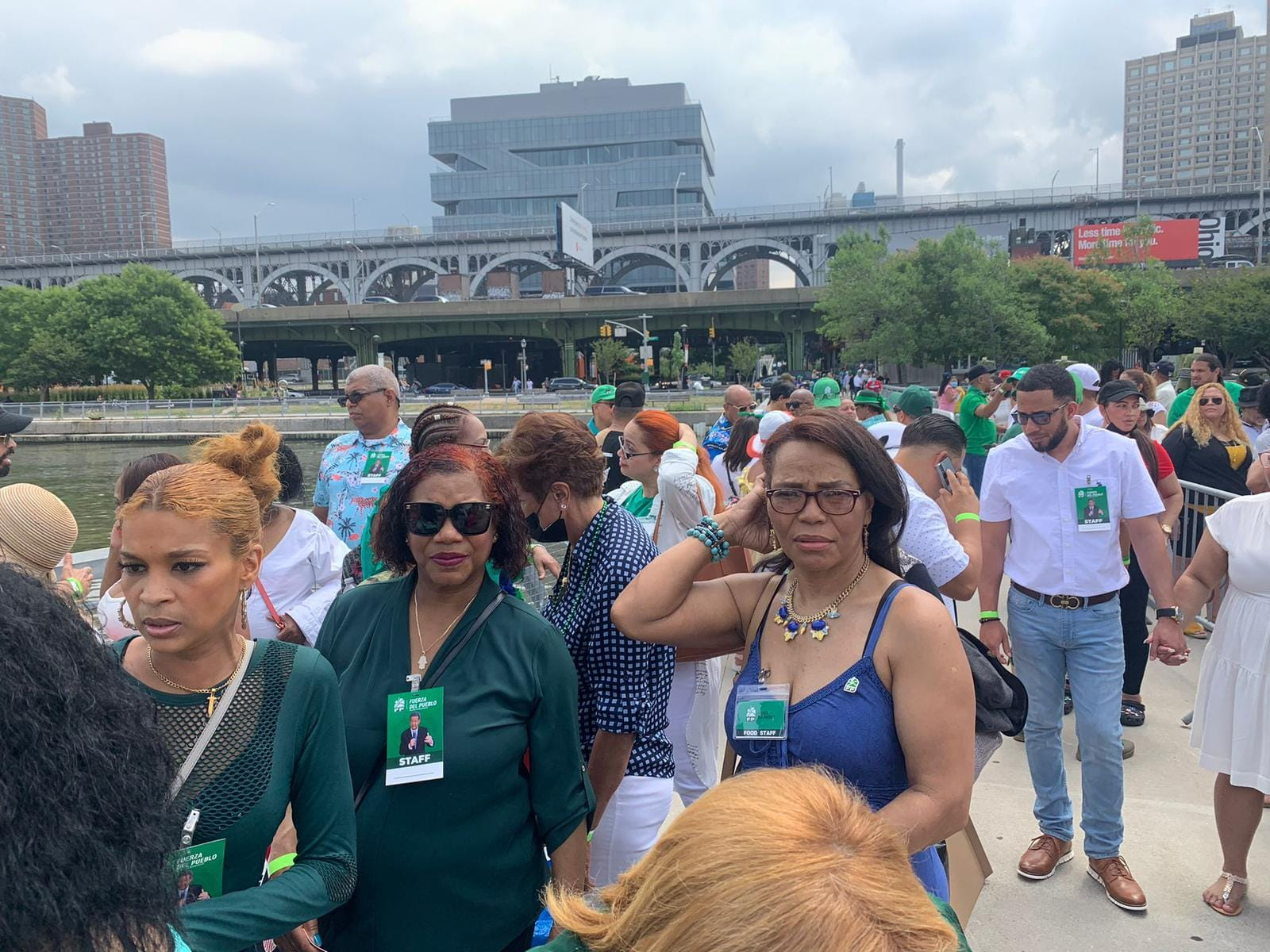 Desde horas tempranas del pasado domingo, comenzaron a congregarse en el muelle de salida de la embarcación en el Alto Manhattan, formándose una larga fila de entusiastas compañeros, simpatizantes y amigos del partido la Fuerza del Pueblo, apoyando con su presencia solidaria para el triunfo del compeñero Leonel Fernández.