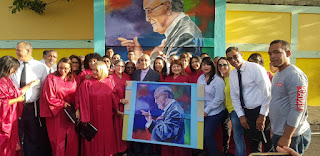 Para develar el mural se hizo un emotivo acto encabezado por la doctora Yanilsa Cruz, directora de Cultura del Ayuntamiento y que además contó con la presencia de Monseñor Tomás Morel Diplán, obispo auxiliar de la Arquidiócesis de Santiago y el padre Carlos Santana, entre otros invitados y amigos del homenajeado sacerdote.