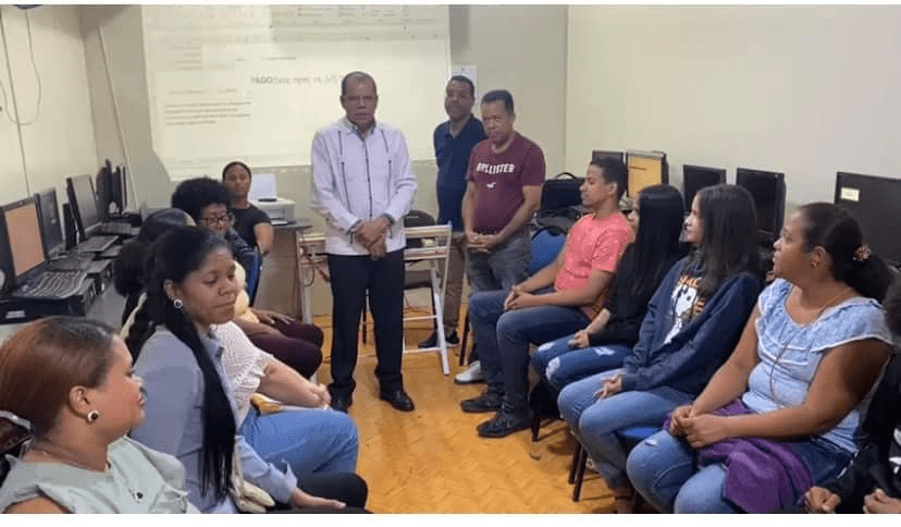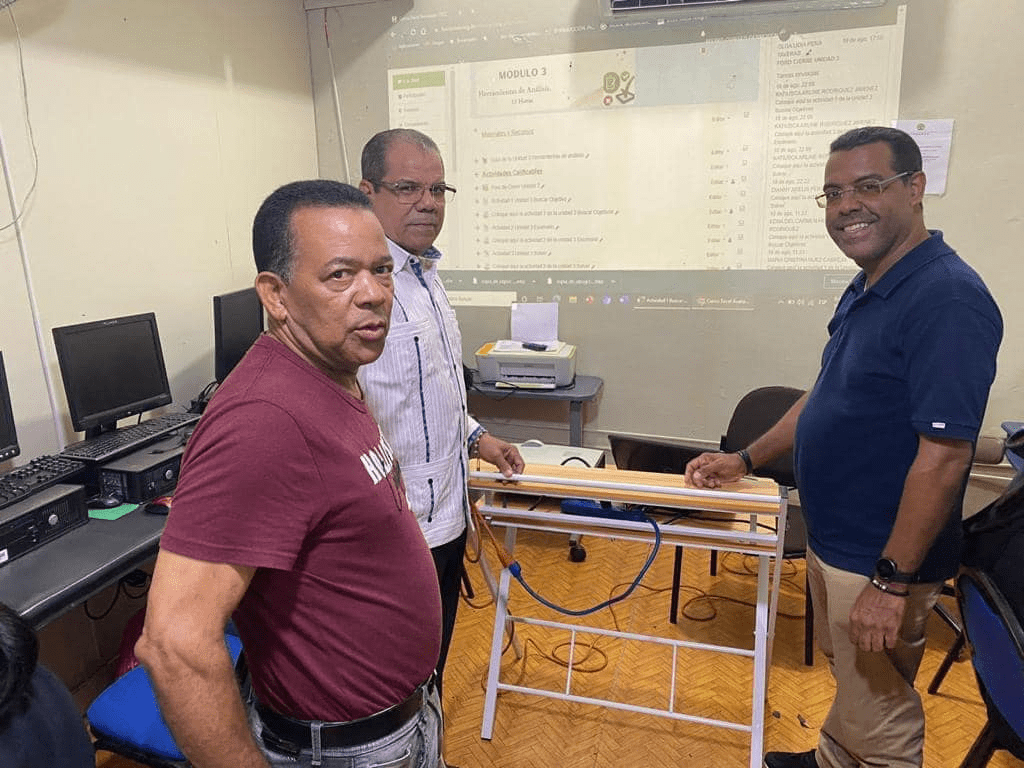 En un emotivo acto en la sede de FUNDAMER, en el municipio de Moca, recibieron el donativo de un Data Show, los directivos de la entidad educativa, profesor Carlos Castillo, el ingeniero José Sánchez, vicepresidente, profesor Adoris Ovalles, la ingeniero Verónica Hiciano y parte de los alumnos de la clase de Informática.