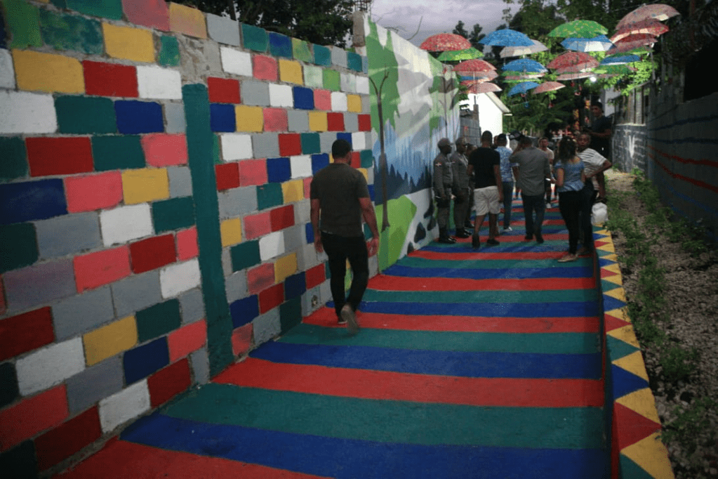 En un segundo acto en el que el alcalde Abel Martínez estuvo representado por Ana María Domínguez, directora de Gestión Integral de Residuos Sólidos, (GIRS), fue entregado el Peatón Romelinda García, construido en el sector Hoya del Caimito, convirtiendo una zona arrabalizada y que representaba un grave peligro para los moradores de la zona, en un camino seguro, limpio y completamente iluminado.