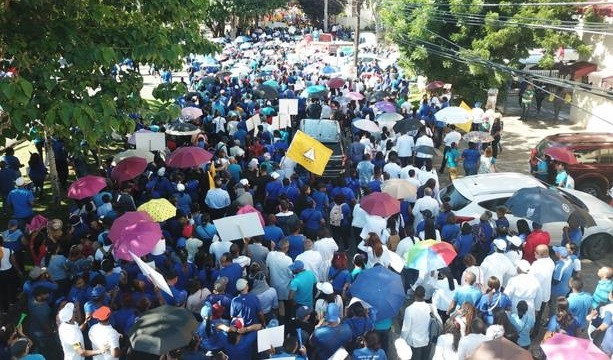 La marcha estuvo encabezada por Senen Caba, presidente del CMD, respaldada por Miguel Surun Hernández, presidente del CARD, directivos de la ADP, el diputado Pedro Botello y representantes de otros gremios profesionales y técnicos.