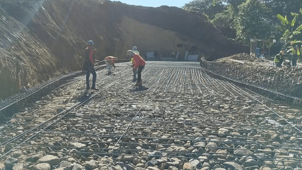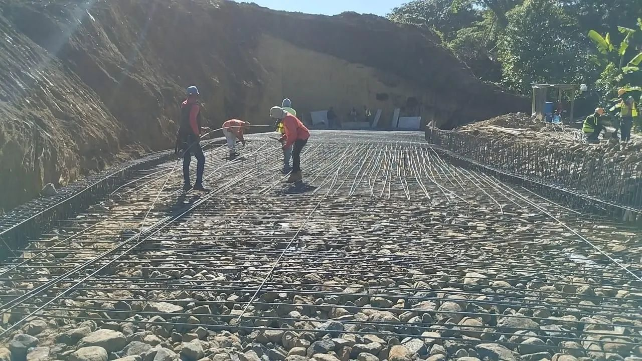 La compañía a cargo de la construcción de la autovía, destacan que se avanza aceleradamente en el preparado del área para el muro de los gaviones, en el área para comenzar las perforaciones para los pilotes que van a sostener las dos vigas principales del puente sobre el río Moca.