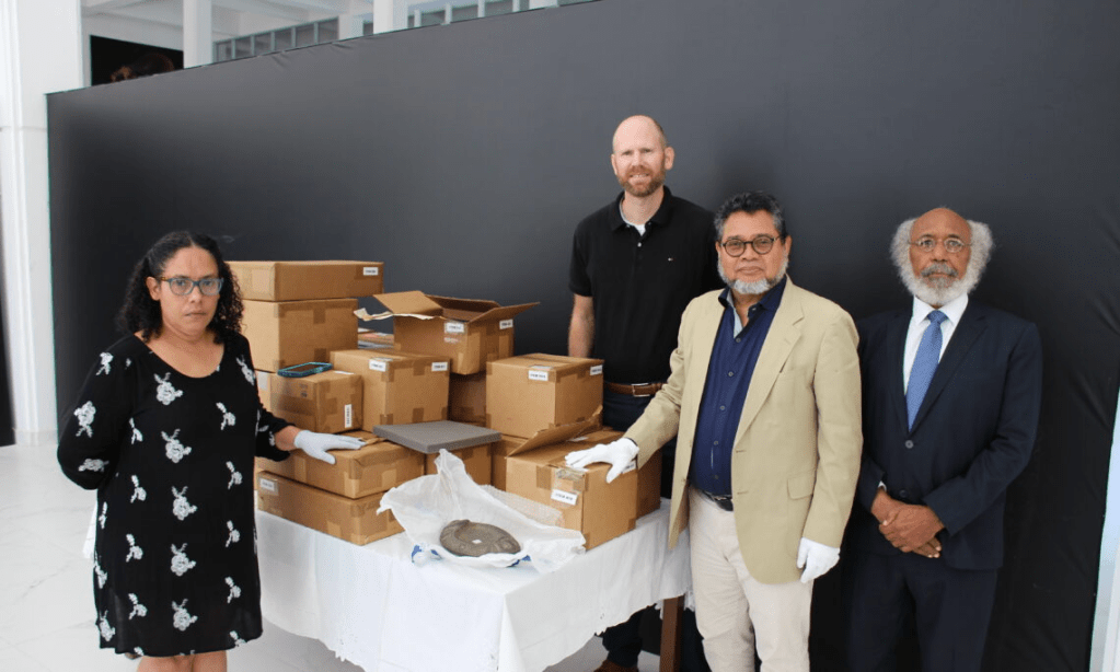 Esta entrega fue realizada en el Museo del Hombre Dominicano, donde además, estuvieron presentes el señor Manuel Vargas Payano, director del Museo del Hombre dominicano, el señor Carlos Andujar, director general de Museos del Ministerio de Cultura, la investigadora Orli Pena, la especialista de museos, Maria Belisa Ramirez y Lisa Álvarez de Relaciones Internacionales del Ministerio de Cultura.