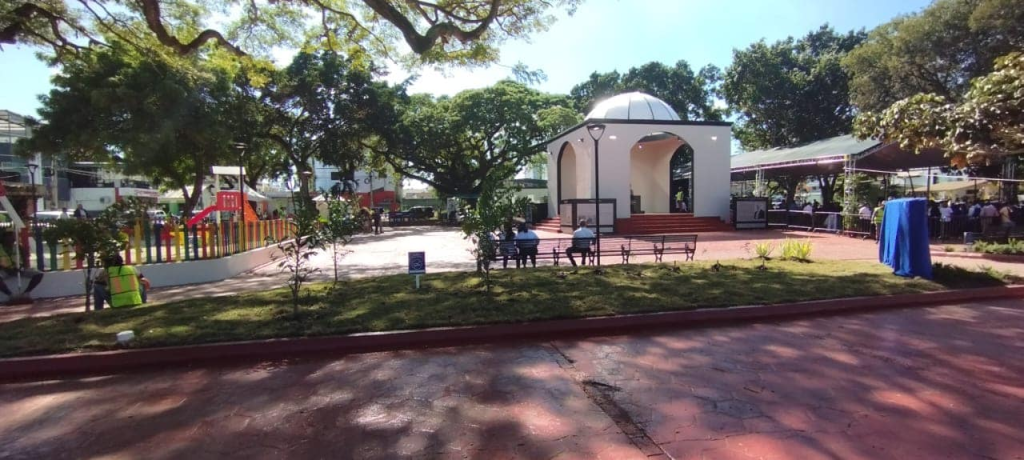 El remozamiento del parque céntrico de Moca, Presidente Ramón C´cerez, que se inauguró este jueves, con la presencia de la primera dama, Raquel Arbaje, es producto de una alianza múltiple, público-privada, entre el Banco Popular, la Primera Dama, Industria y Comercio, y el ayuntamiento de Moca, con gestión coordinada por el alcalde doctor Miguel Guarocuya Cabral.
