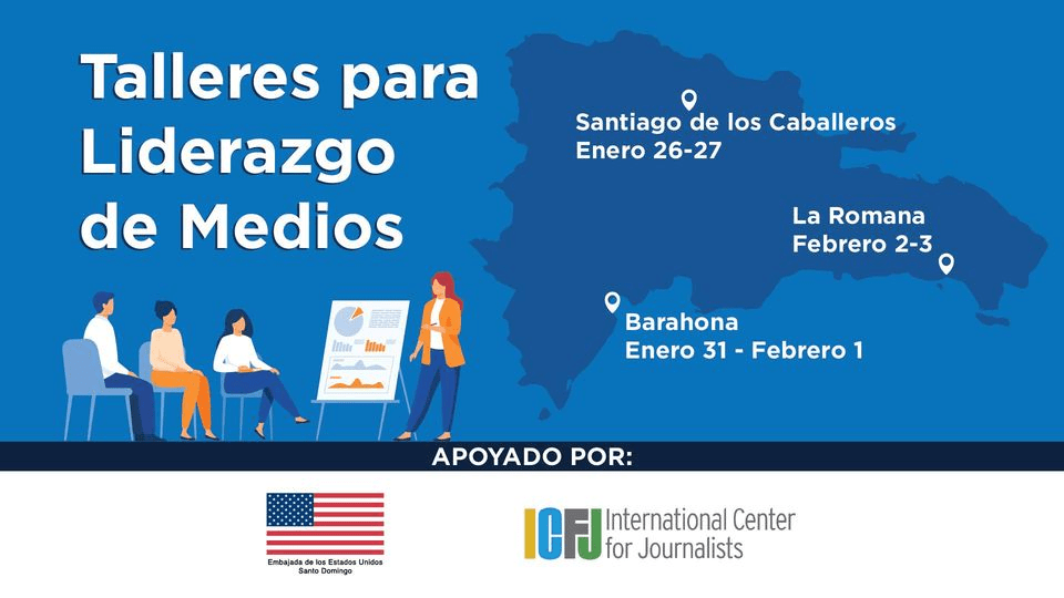 SANTO DOMINGO.-La Embajada de los Estados Unidos en la República Dominicana y el Centro Internacional de Periodistas (ICFJ), están convocando a periodistas en ejercicio, estudiantes de periodismo y profesores universitarios, a participar en tres talleres para liderazgo de medios.