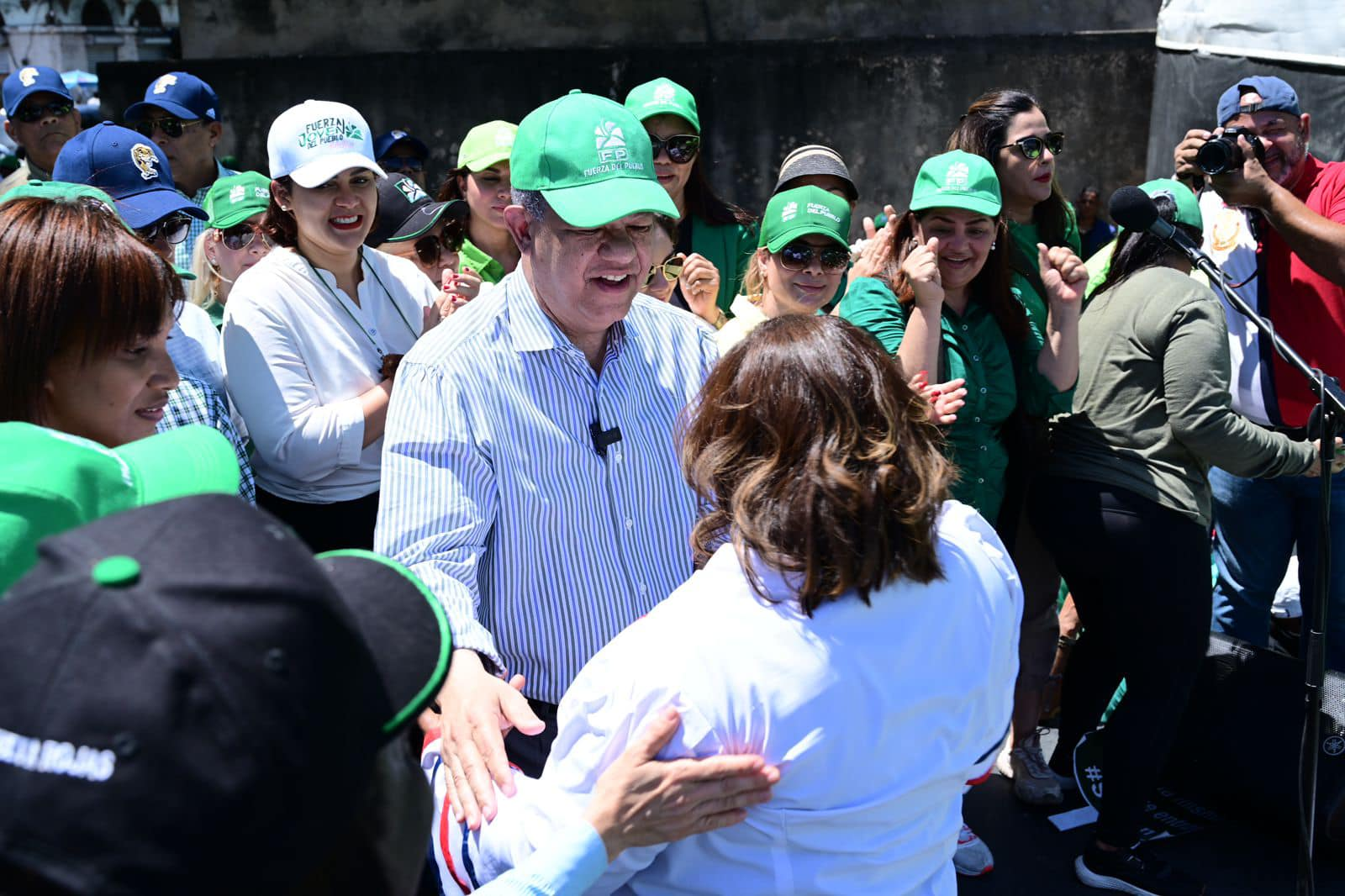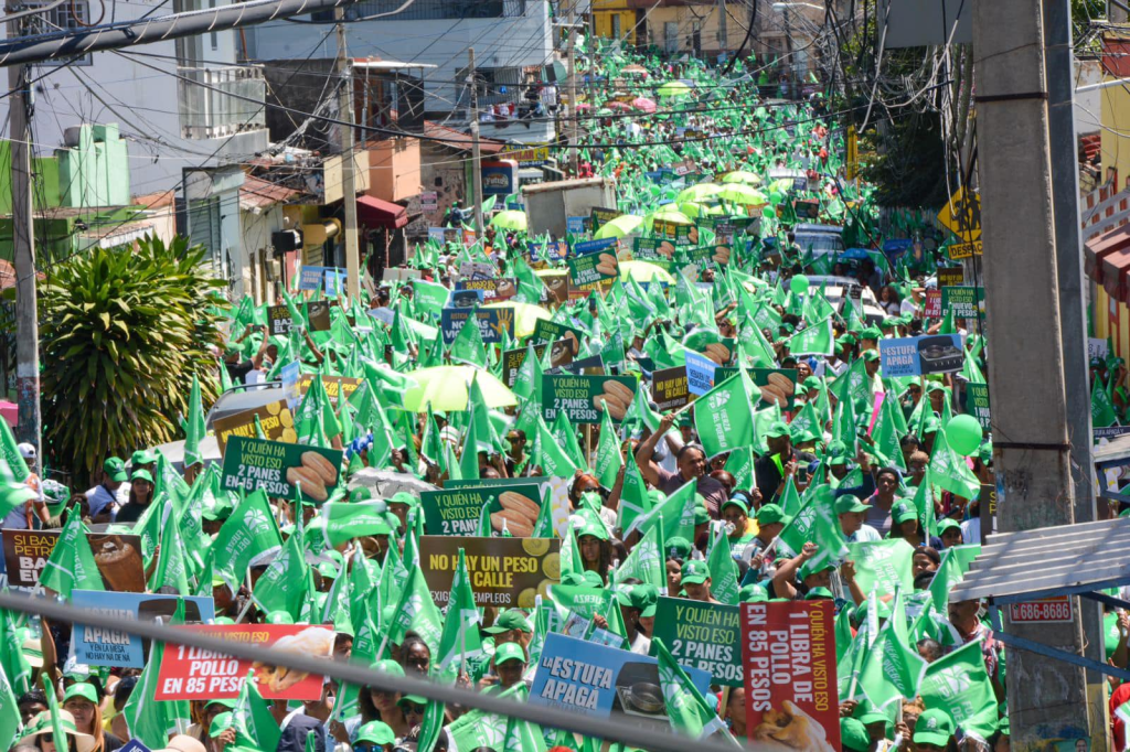 Con camisetas, cachuchas y otra vestimentas verdes (color que identifica la FP) recorrieron a pie en forma entusiasta un trayecto de unos cuatro kilómetros, vociferando slogans y levantando pancartas en contra de los males que, a su juicio, afectan a las familias dominicanas.