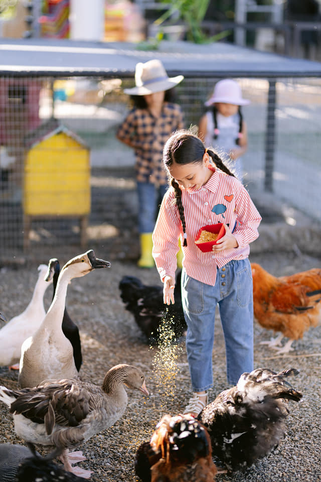 El centro cuenta con una gran variedad de aves, entre ellas más de 20 especies de razas de gallinas diferentes, 4 especies de codornices muy poco comunes en el país, 9 especies distintas de faisanes, 6 variedades de pavos reales, también tenemos un Emu que es la segunda ave corredora más grande después del avestruz, y también tenemos un voladero de aves de pico duro donde se encuentran agapornis en todas sus variedades de colores y ringneck. También dispone de un estanque de peces koi donde los niños pueden alimentarlos y apreciar los vibrantes colores de esos hermosos peces.