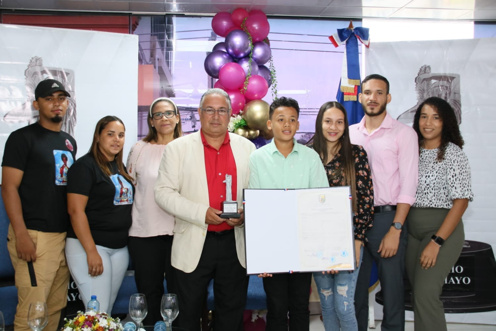 Su esposa Gricelda Rodríguez, sus hijos Luis José, Yanilsa del Carmen, Madelin Maria y su nieto Joelfry Faña, lo acompañaron en este merecido reconocimiento propuesto por el regidor Janlet Pérez, por su forma dinámica, alegre, chispiante y acertada de narrar los juegos del Baloncesto Superior de Espaillat, a los que les imprime su sello personal en cada temporada.