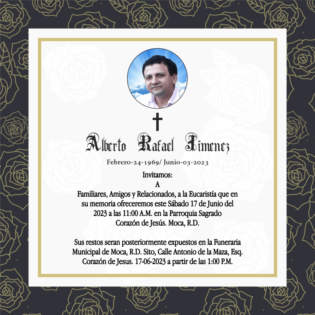 Invitación a velatorio de Boquimi en Moca Posted on 15 junio, 2023 por mocapresente2013 MOCAPRESENTE.NET, periodismo digital sin frontera, informando Comparte esto: Compartir en X (Se abre en una ventana nueva) X Comparte en Facebook (Se abre en una ventana nueva) Facebook Compartir en WhatsApp (Se abre en una ventana nueva) WhatsApp Enviar un enlace a un amigo por correo electrónico (Se abre en una ventana nueva) Correo electrónico Me gusta Cargando...