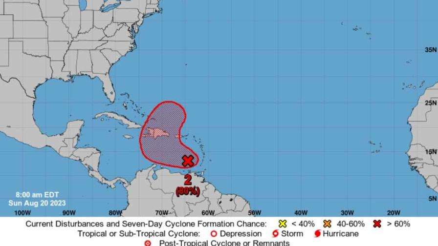 Según el Centro Nacional de Huracanes de Estados Unidos, el sistema se encuentra en el Caribe Oriental y tiene un 80% de probabilidad de formación de ciclón tropical en 48 horas.