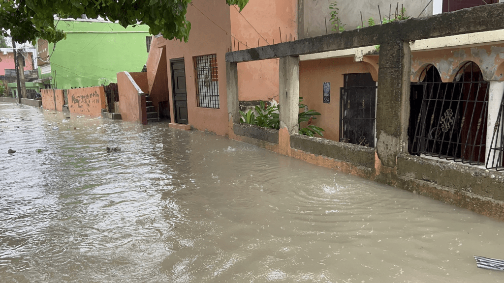 Decenas de viviendas amanecieron inundudadas este miércoles anegadas en el sector Cancino Adentro, de Santo Domingo Este por los efectos de Franklin.