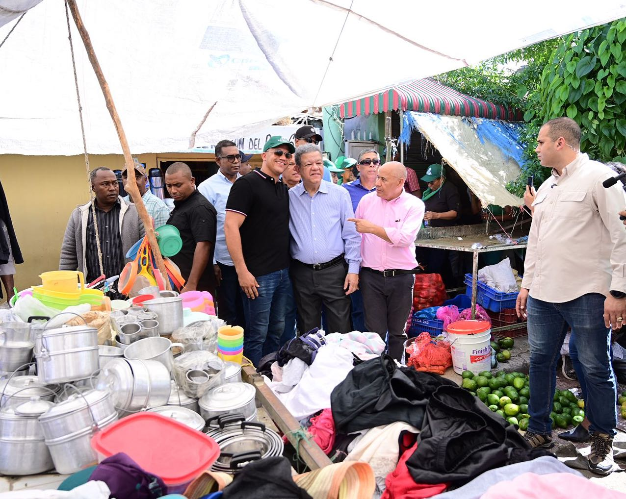 Al detenerse la caravana del triunfo, a su llegada al mercado público, el doctor Leonel Fernández, fue abordado inmediatamente por un vendedor de unos 73 años, a la entrada de la popular plaza del comercio del pueblo, que quien detalladamente le explicó sus vicisitudes y penurias desde la llegada de este gobierno del PRM.