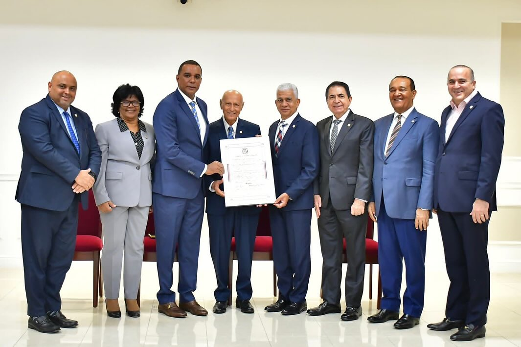 El doctor Silverio López, recibió el merecido reconocimiento en el senado de la República, acompañado del senador Carlos Gómez, de su esposa la doctora Albertina Felix, de su hija la doctora Shirley López, Luis Rodríguez y de otros miembros distinguidos del Patronado Mocano de Lucha contra el Cáncer, de Moca.