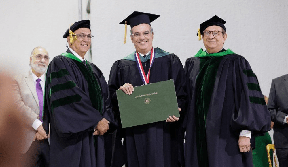 La distinción le fue colocadas por el rector, Miguel Fiallo Calderón, mientras que el doctor Leonardo Conde, decano de la Facultad de Ciencias Económicas y Sociales, pronunció el discurso central y la semblanza del mandatario.