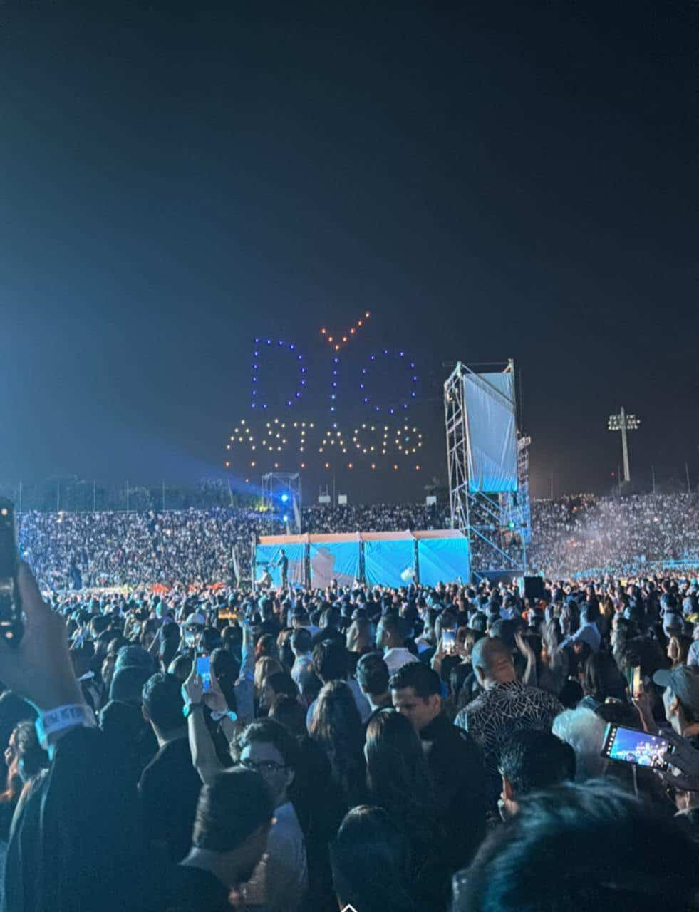 Aproximadamente a mitad del concierto y en un destello de tecnología, apareció en el cielo, a un costado de donde se desarrollaba el evento, un letrero promoviendo al Partido Revolucionario Moderno (PRM) y a su candidato municipal en Santo Domingo Este.