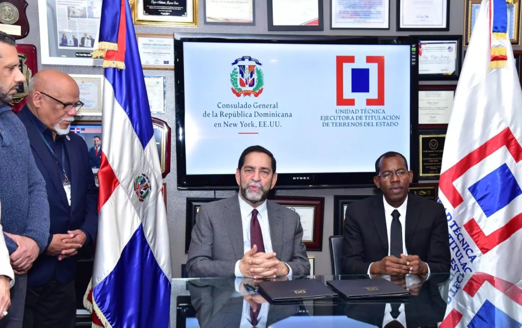 NUEVA YORK.– El cónsul general de la República Dominicana en esta ciudad, Eligio Jáquez, y el director de Titulación del Estados, Duarte Méndez, firmaron un acuerdo que permitirá a los dominicanos residentes en el exterior obtener la titulación definitiva de la propiedad que ostentan en su país natal en calidad de ocupantes.