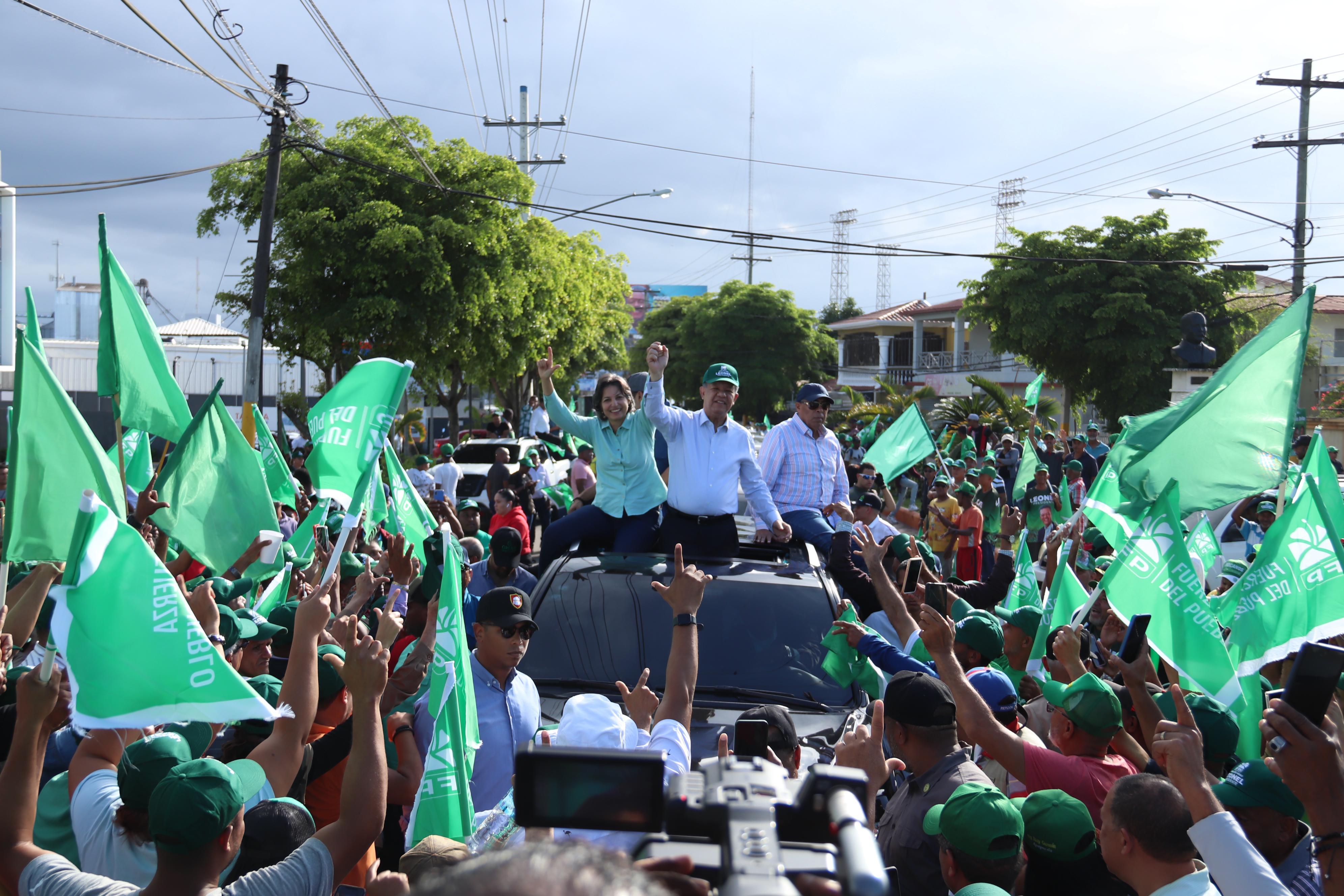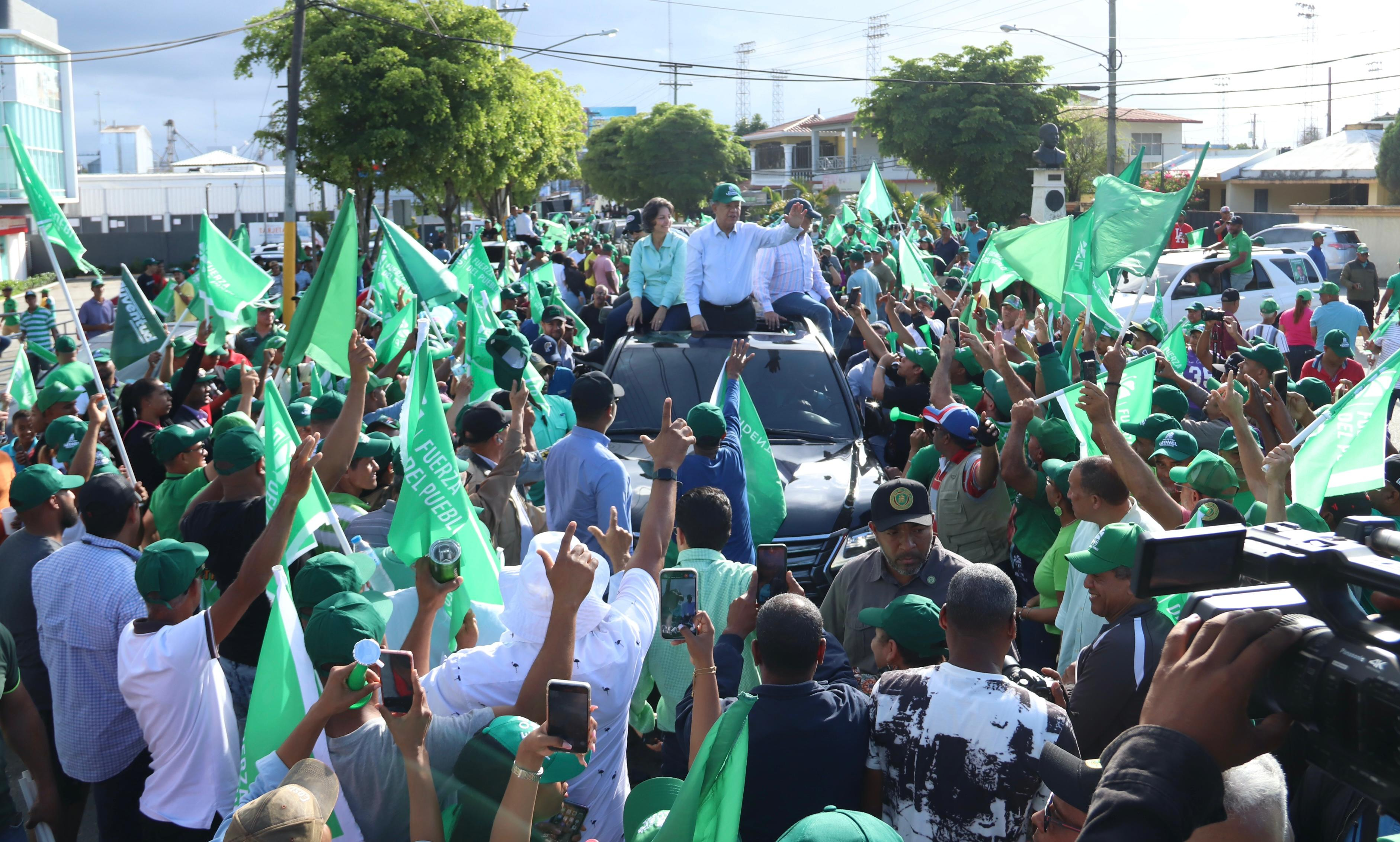 MOCA, Espaillat.-El doctor Leonel Fernandez, líder y candidato presidencial del partido Fuerza del Pueblo (FP), encabezó en este municipio, una gran multitudinaria marcha-caravana del triunfo, junto a los candidatos a senadora y diputados, donde masivamente el respaldo de la gente se desbordó en las calles.