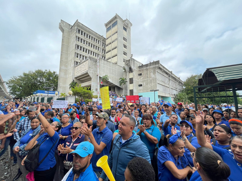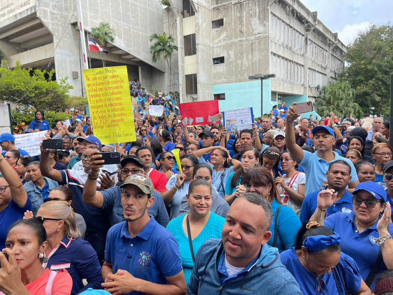 Miguel Jorge, presidente de la ADP en Santiago, explicó que las demandas que los mantienen este miércoles en las calles son el aumento del 20% de su sueldo, la mejora del desayuno escolar, de los planteles escolares, la falta de maestros, la falta de talleristas, la falta de seguridad en las escuelas, entre otras demandas.