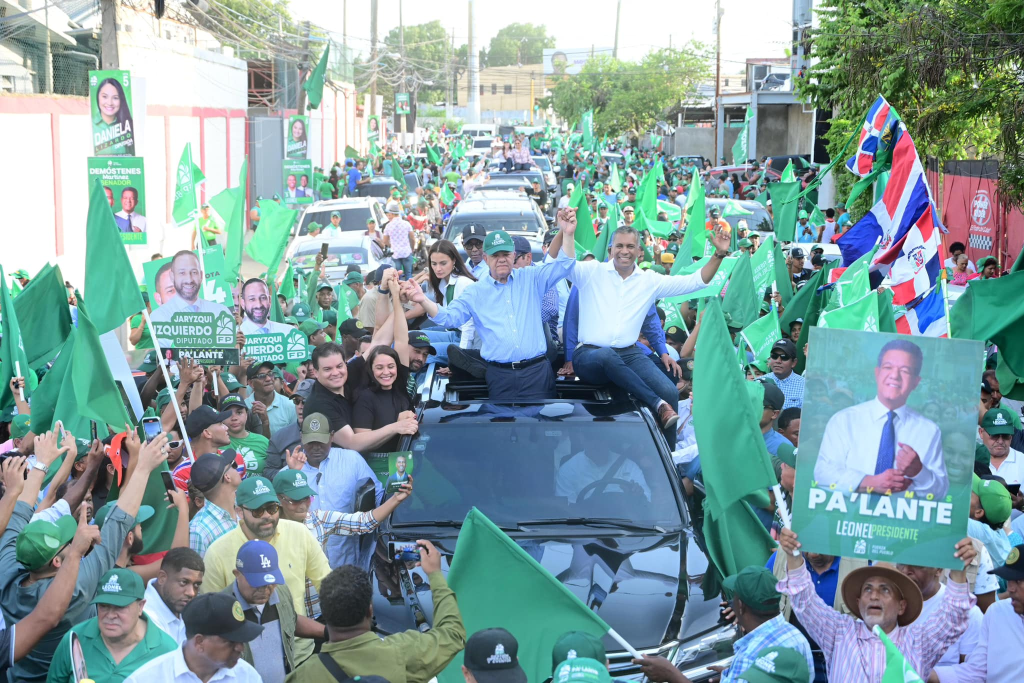 Al inicio de la tarde, el líder opositor encabezó similar actividad en La Vega, donde miles de personas tiñeron de verde los principales barrios de la ciudad olímpica.